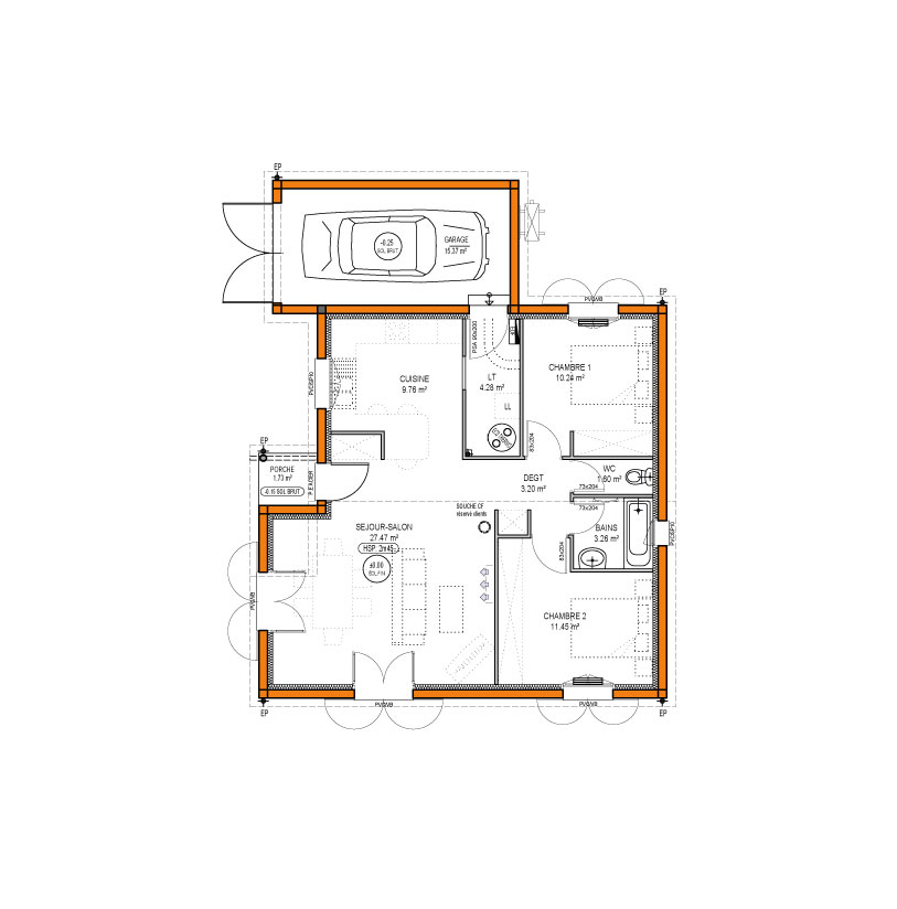 Découvrez les différents plans de cette maison : option cellier, option garage, option carport etc..