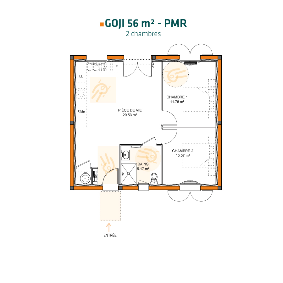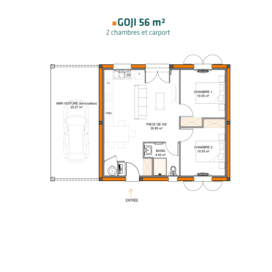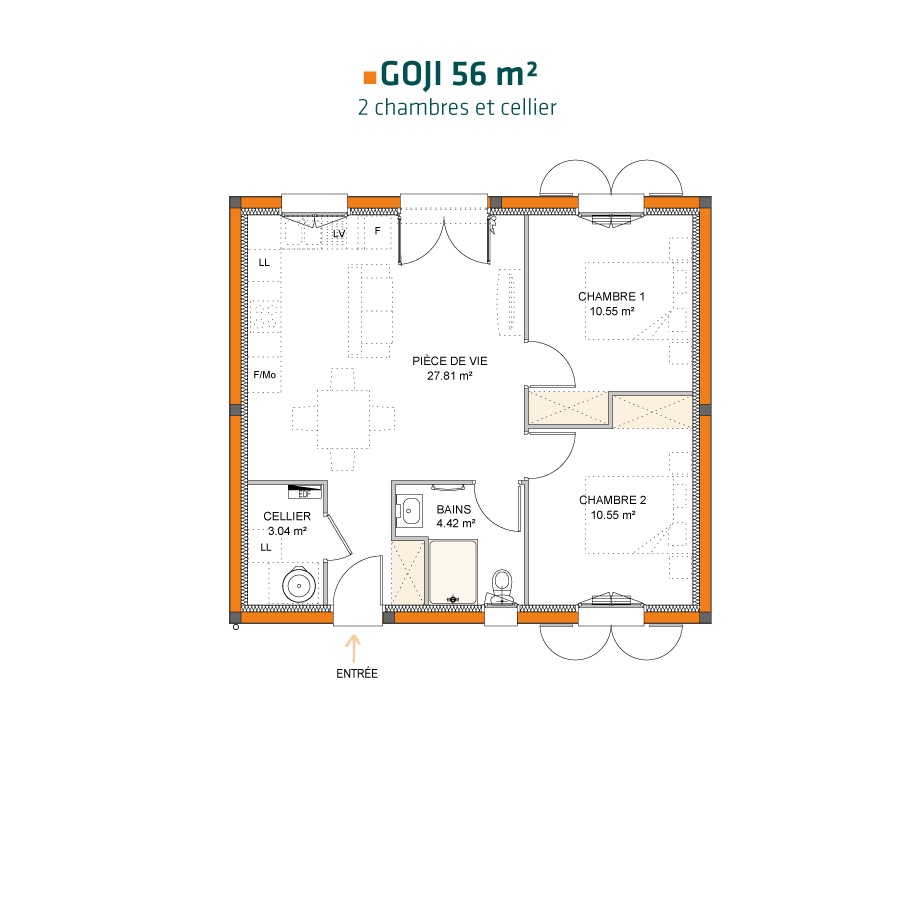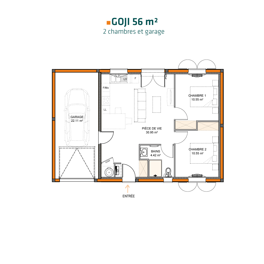 Avec 2 chambres et différentes déclinaisons possibles, Goji 56 est une maison bien pensée pour les familles actives et résolument adaptée à son époque.